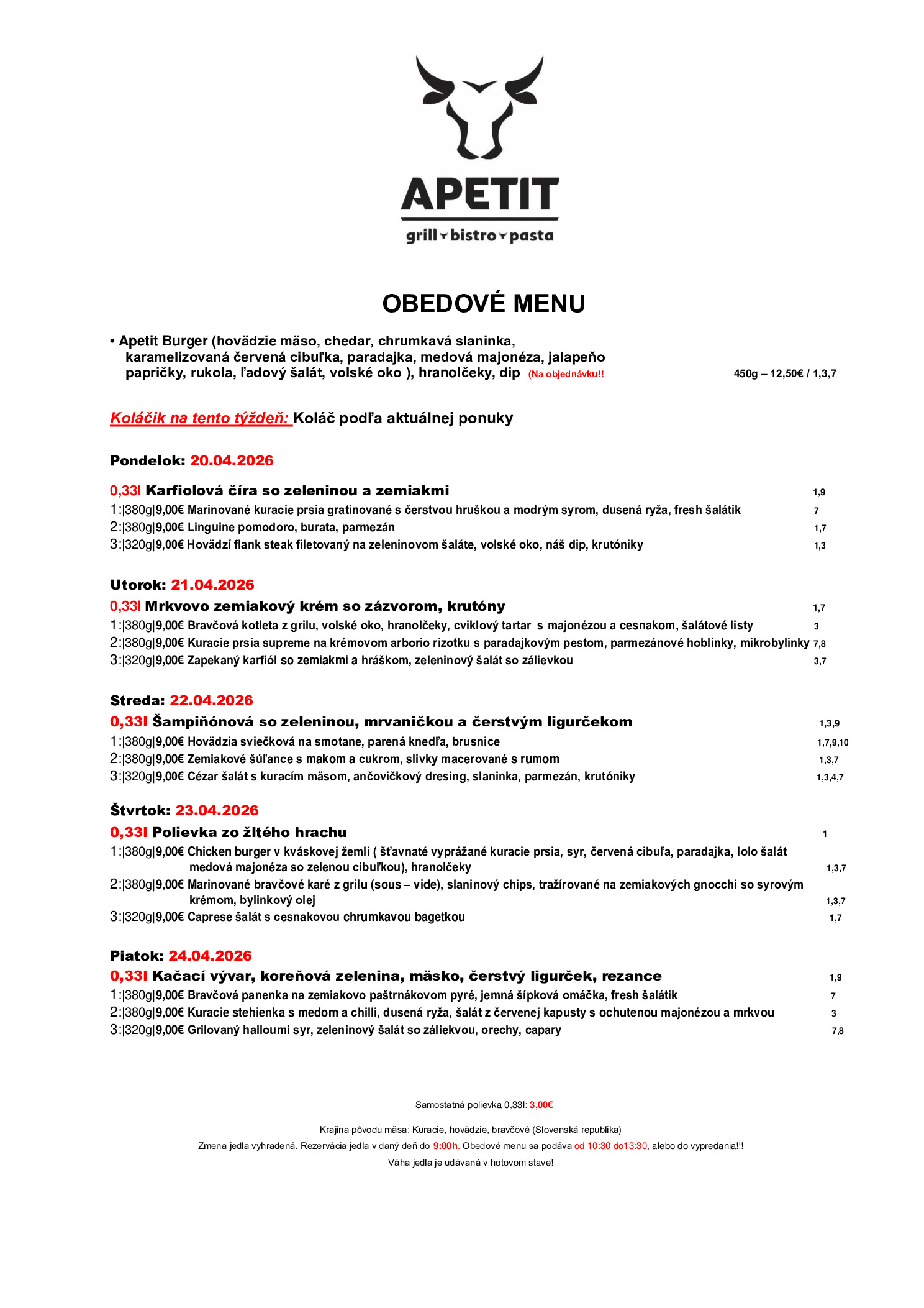Ponuka reštaurácie platná od 20.04.2026 do 24.04.2026