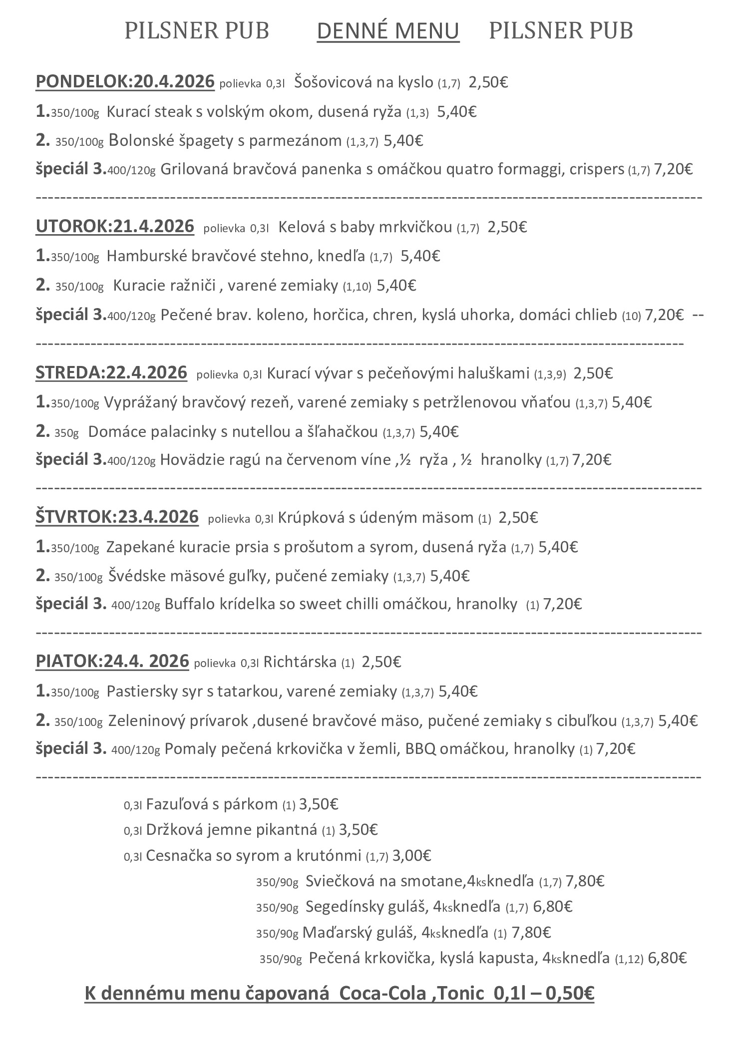 Ponuka reštaurácie platná od 20.04.2026 do 24.04.2026