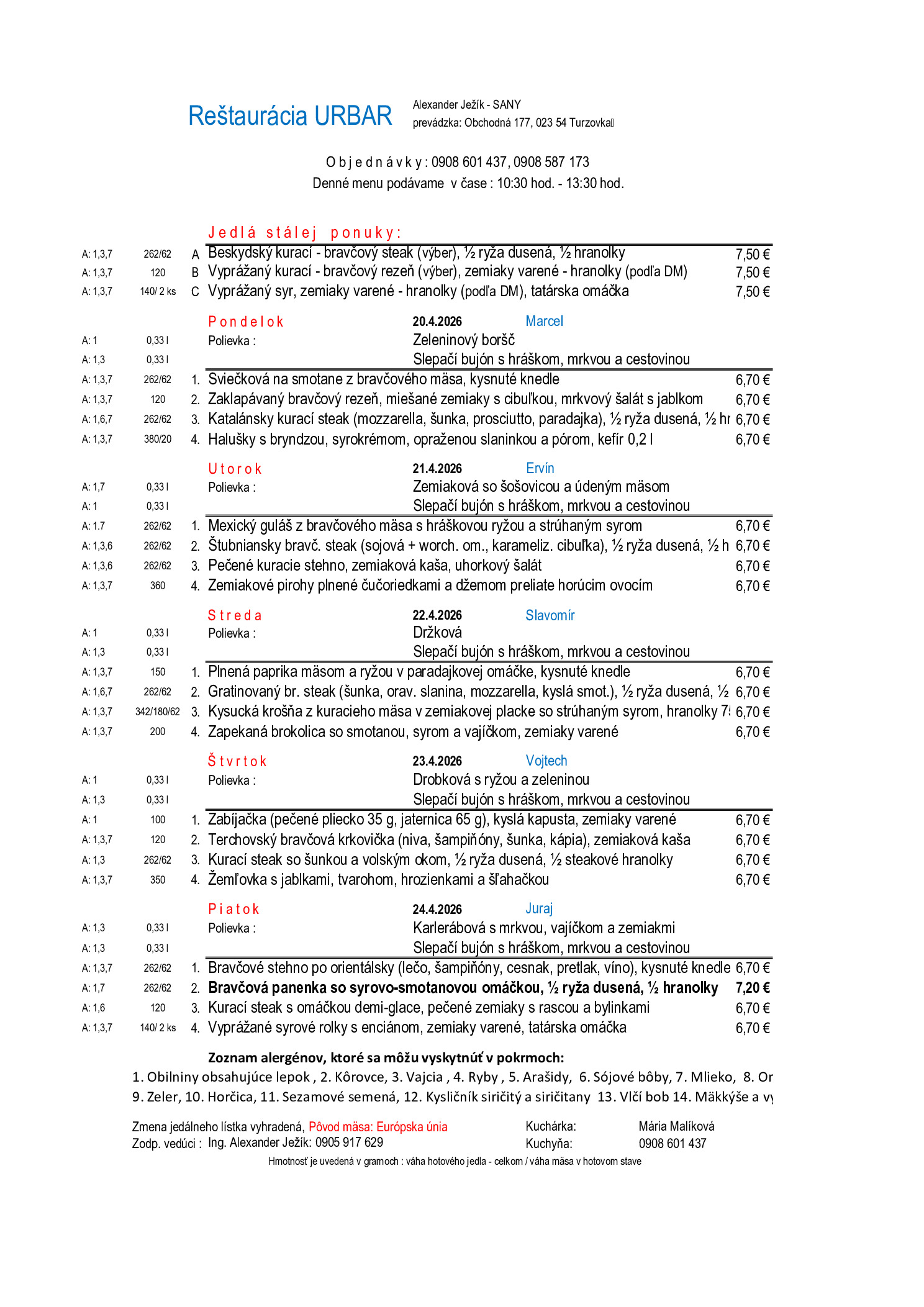 Ponuka reštaurácie platná od 20.04.2026 do 24.04.2026